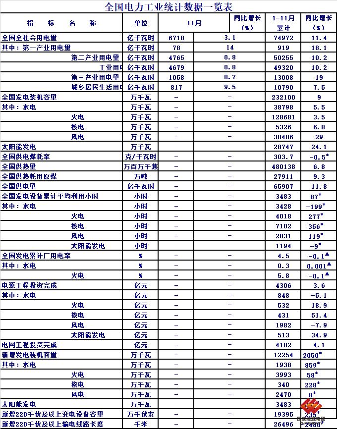 1-11月份,全國(guó)發(fā)電設(shè)備累計(jì)平均利用3483小時(shí),比上年同期增加87小時(shí)。其中,核電7102小時(shí),比上年同期增加356小時(shí);風(fēng)電2031小時(shí),比上年同期增加119小時(shí)。
